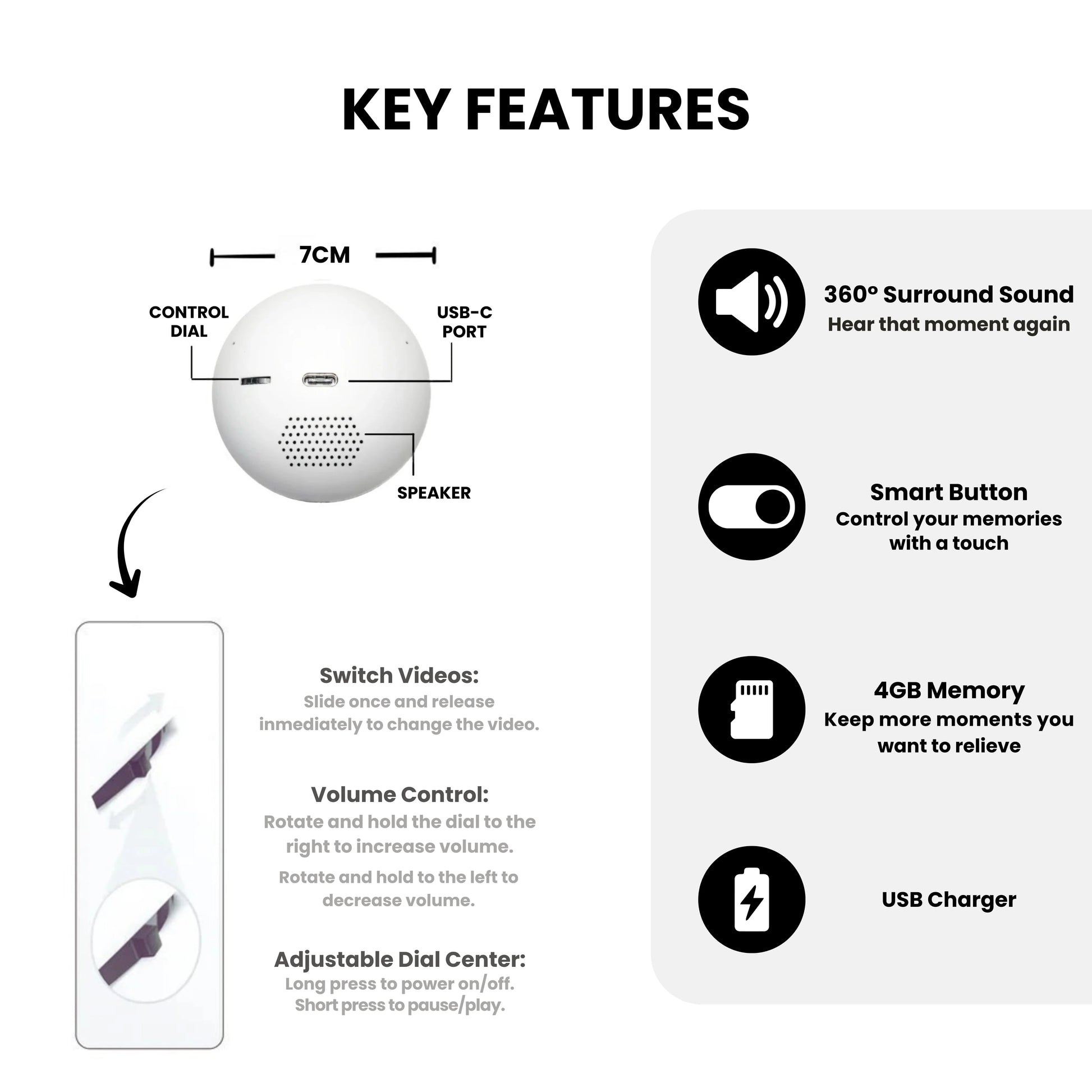 Uploading your video is simple. Just connect the Magic Memory Sphere to your Windows PC using the included USB cable and drag your video file into the device—just like using a regular USB stick.